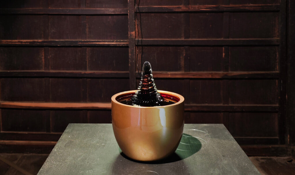 変幻自在な渓谷の流れを彷彿させる、磁性流体を用いた動き流れる児玉幸子による彫刻や光のメディアアートの展示に加え、文化庁の文化庁令和7年度生活文化創造・戦略展開事業として、檜原村でつくられた和紙を用いた書の作品群が展開されます。