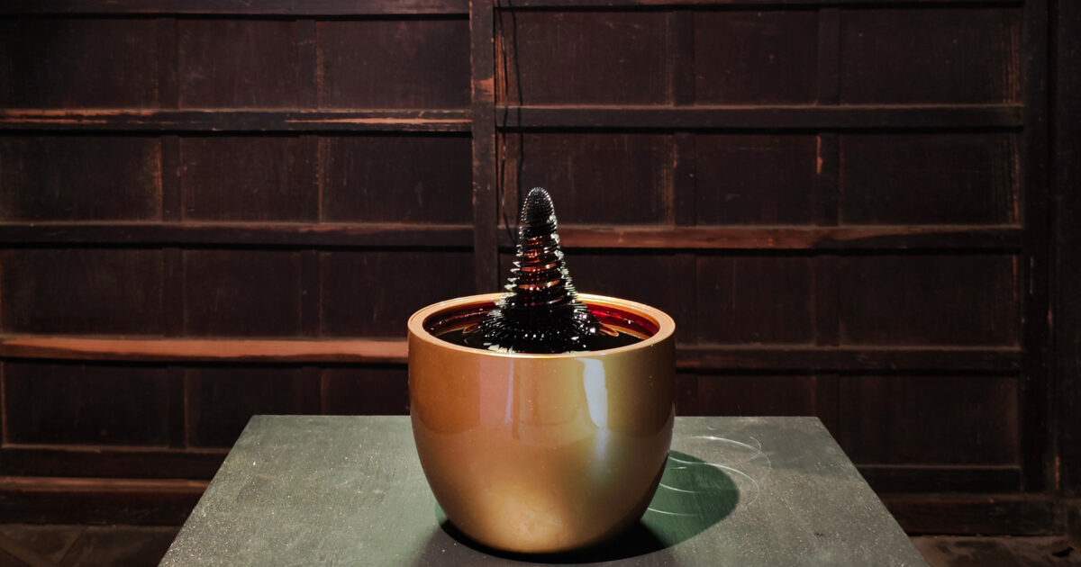 変幻自在な渓谷の流れを彷彿させる、磁性流体を用いた動き流れる児玉幸子による彫刻や光のメディアアートの展示に加え、文化庁の文化庁令和7年度生活文化創造・戦略展開事業として、檜原村でつくられた和紙を用いた書の作品群が展開されます。